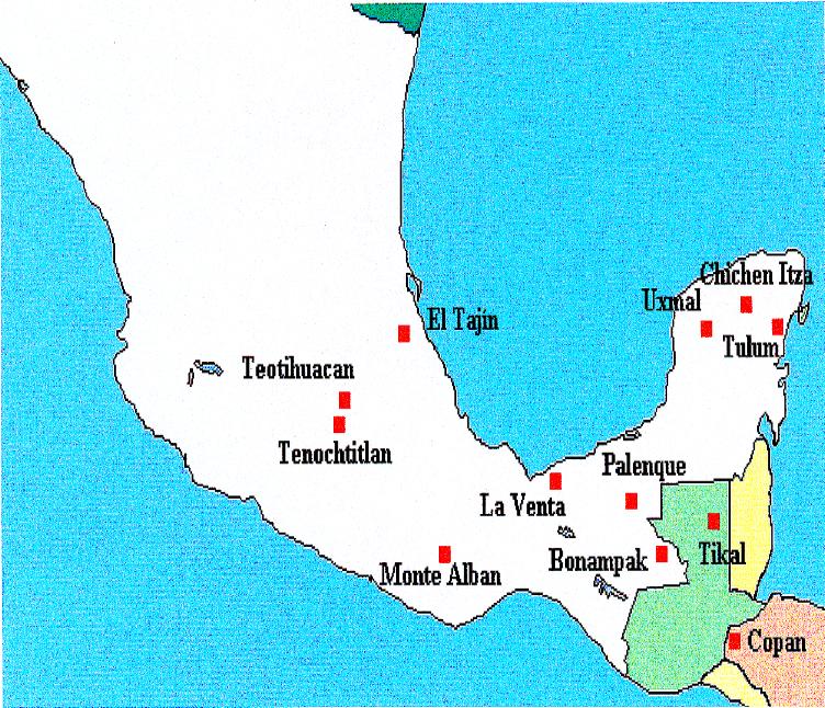 Les principaux sites Mayas se trouvaient surtout au Mexique,au Guatemala, au Belize et au Honduras.