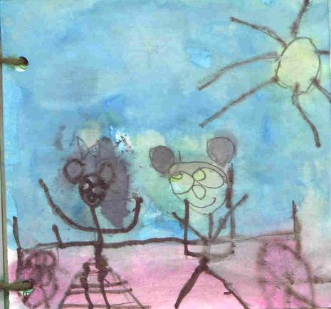 | La grenouille trouve pour sa septième rencontre un crapaud avec un chapeau de cow boy. Surprise, elle lui dit : " coa, coa a, coacoa" et le crapaud lui répond, "ribet, ribet, ribet", il parle anglais, celui-là et je ne comprends rien, je m'en vais !" | |